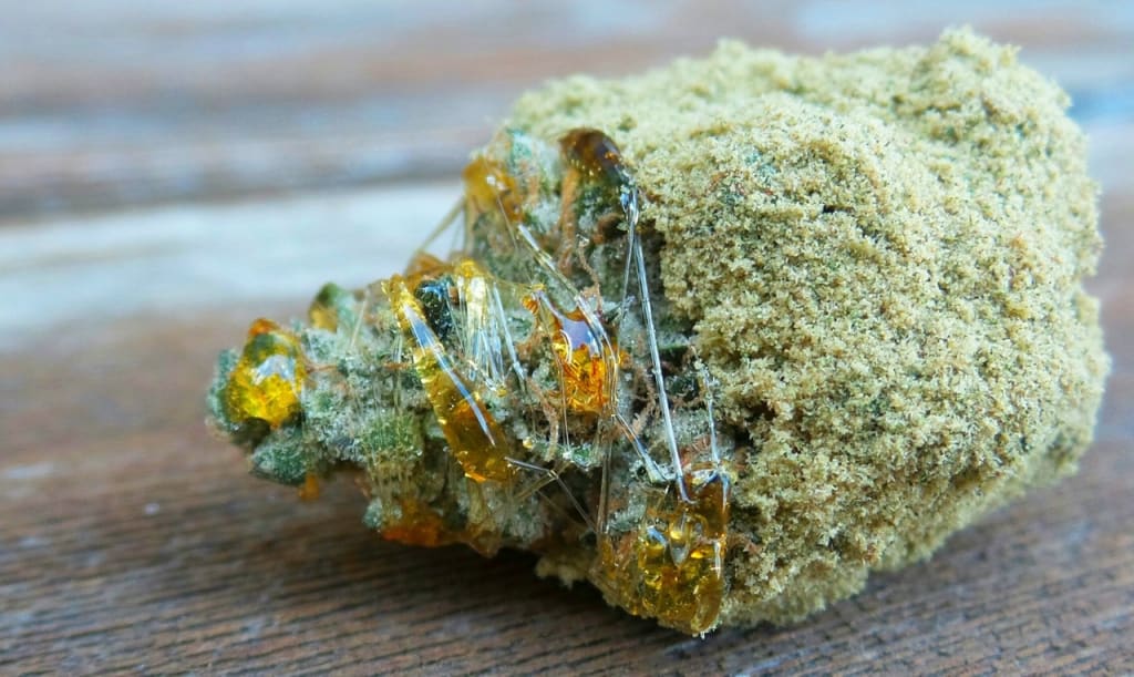 They are BHO oil-soaked weed buds left to dry and harden. After that, they get covered in kief or dry sifts hash, amping up the potency.