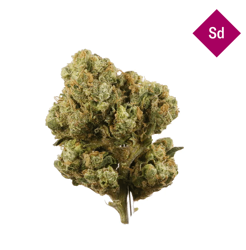 Sour Diesel, aka Sour D, is a sativa marijuana strain made by crossing Chemdawg and Super Skunk. Sour Diesel produces dreamy cerebral effects that are fast-acting and energizing. This strain features a pungent flavor profile that smells like diesel. Medical marijuana patients choose Sour Diesel to help relieve symptoms associated with depression, pain, and stress. Growers say this strain grows best in a dry, outdoor climate and has a flowering time of 77 days. Fun fact: Sour Diesel first became popular in the early 1990s and has been legendary ever since.